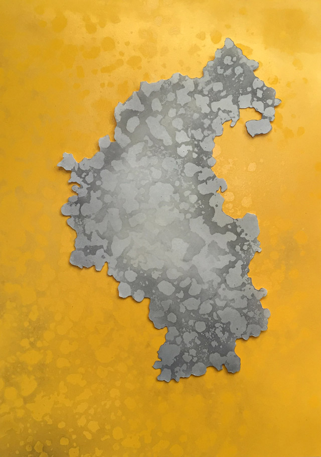 rain carving [iii], 14″ by 20.25″, mixed media screenprint on cut and reassembled paper, 2015