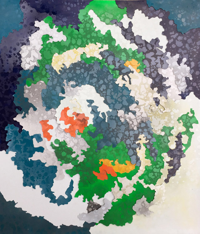 system I: Ana, size: 25″ by 29.5″ medium: mixed media screenprint on cut and reassembled paper, 2015