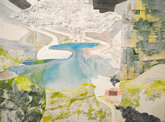 “Maybe you don’t worry enough,” found image and gouache on paper, 18″x24″, 2014