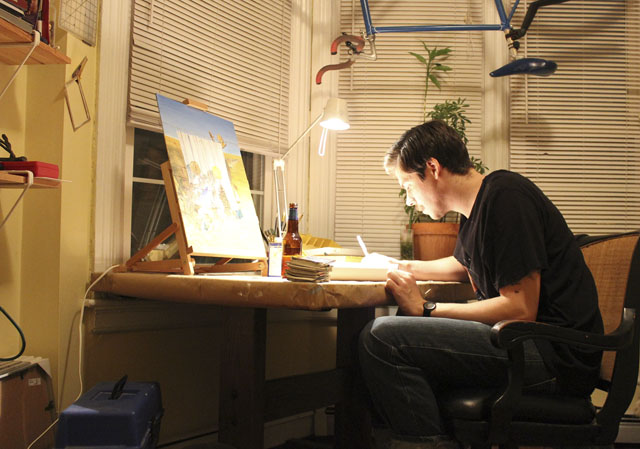 The concept of the “artist studio” has a broad range of meanings, especially in contemporary practice. The idea of the artist toiling away alone in a room may not necessarily reflect what many artists do from day to day anymore. Describe your studio practice and how it differs from (or is the same as) traditional notions of “being in the studio.”